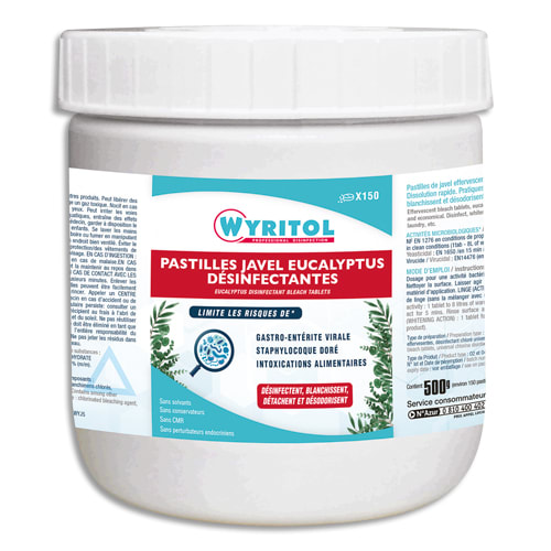 Les pastilles eau de Javel Wyritol sont bactéricides, levuricides, virucides.