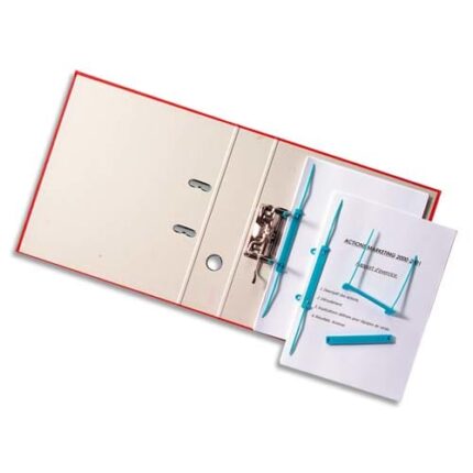 Attache pour archivage  »CAPICLASS »En plastique haute résistance. Pour documents perforés. Système de fermeture crantée. Etiquetage possible sur le dessus de